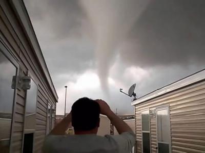 美国男子近距离抓拍龙卷风接近拖车房屋惊