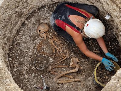 在Winterborne Kingston挖掘铁器时代晚期的杜罗特里亚墓地。来源:伯恩茅斯大学(蜘...
