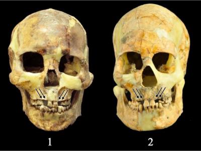 两个骨骼上的牙齿消融示例。箭头指向在手术过程中拔除的牙齿。(图片来源:曾等,2...