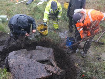 考古学家在英国达特穆尔国家公园挖掘青铜时代的石墓。(图片来源:©Alec Coll...