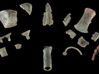 一系列古老的青铜文物,包括箭头和斧头(图片来源:Mark Lodwick/大英博物馆,CC B...