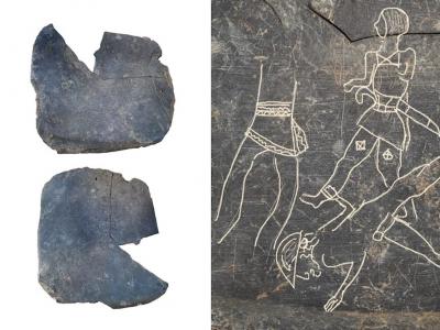 将三名战士在战斗中的叠加图刻在石板上。(图片来源:E.Rodríguez/M.Luque/CSIC)...