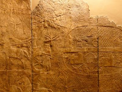 这幅亚述浮雕展示了亚述人在围攻拉吉时使用的营地。(图片来源:斯蒂芬·康普顿提供...