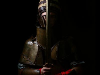 展示研究中使用的丹德拉盔甲复制品的艺术照片。图片来源:Andreas Flouris和Marija...