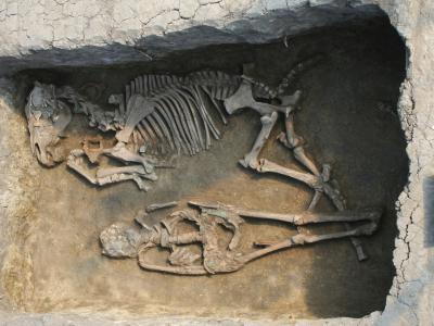 研究人员发现了一匹马和一名年轻人的八世纪遗骸,这名年轻人是其亲属单位创始人的儿...
