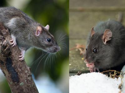 一只棕色的老鼠(褐家鼠;左)和一只黑色的老鼠(家鼠;右)。(图片来源:Heiko K...