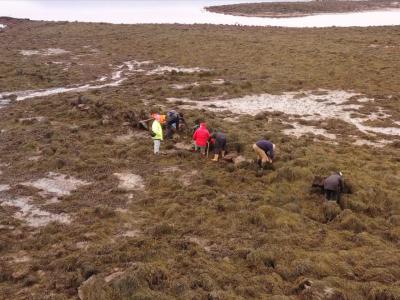墙壁或城墙的遗迹现在被海藻覆盖,只有当海藻被清除后才能清楚地看到。(图片来源:...