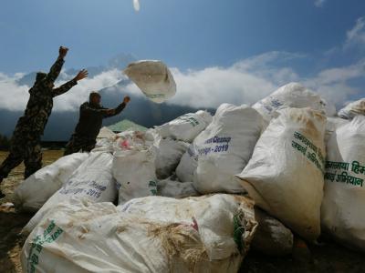 珠穆朗玛峰清出至少11吨垃圾 雪巴人收尸