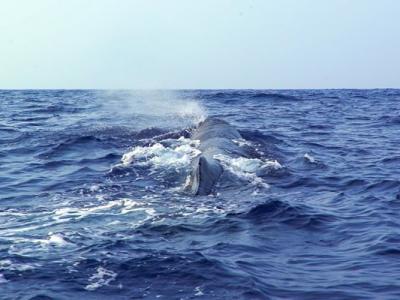 中国科学院科考人员进行“南海深潜鲸类科考航次”考察期间首次发现抹香鲸母子(蜘蛛...