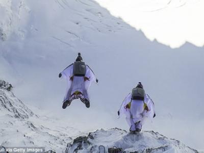 法国极限运动员身穿蝙蝠装由阿尔卑斯山顶