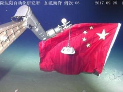 潜水器在深海海底布放标志物。科研人员首次进行600...