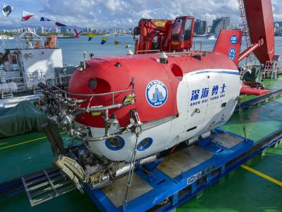 中国新型载人潜水器“深海勇士号”。深海勇士号由母...