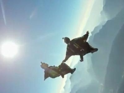法国极限运动员穿蝙蝠装在意大利多洛米蒂
