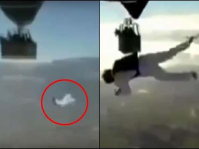 法国知名极限运动员Tancrede Melet在热气球间走钢丝失手摔死 Tancrede Melet热...