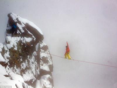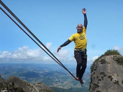 巴西杂技人在逾千呎高空走钢线横渡拉兰雅达特拉山岭 视频:巴西杂技人...