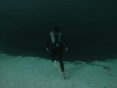 法国潜水员潜入巴哈马群岛660呎深“蓝洞”