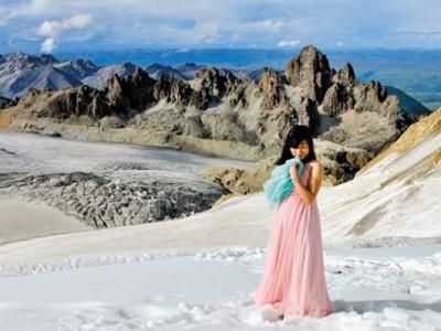 湖南湘潭女子易锳登海拔6168米雀儿山主峰后换上单薄连衣裙拍艺术照 (蜘蛛网报道...