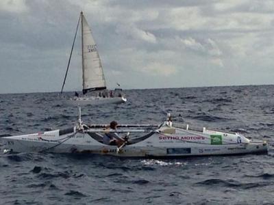 科纽霍夫独自划艇(前)横渡太平洋 科纽霍夫(左)抵达昆士兰后,获民众英雄式欢迎...