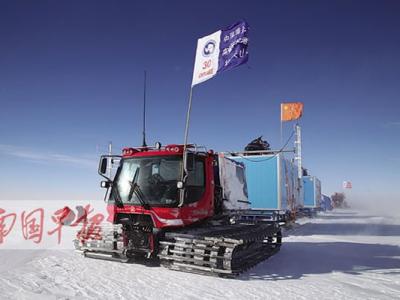 行进中的考察车队 缪秉魁在科考途中 刚刚从南极返回的缪秉魁介绍从南极带回...