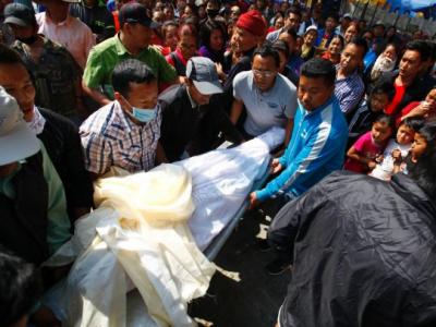 当地时间2014年4月19日,尼泊尔加德满都,珠峰雪崩遇难者的家属悲痛不已。 ...
