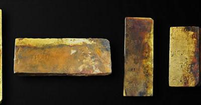 奥德赛海洋勘探公司的打捞船 捞起的其中两条金条 (蜘蛛网)据香港媒体东网报...