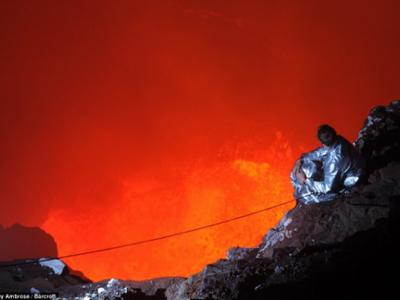 杰夫坐在距离滚烫岩浆不足30米的地方 中新网9月27日电 据外电报道,冒险家杰夫...