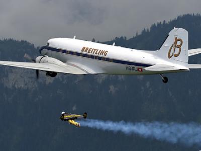 瑞士“钢铁侠”与客机共同飞翔 瑞士“钢铁侠”与客机共同飞翔 瑞士“钢铁侠...