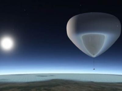 气球载人飞行在高空的示意图 这是载人舱的大图,气球在降落时会采用滑翔伞着陆...