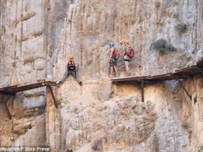 一幅特写照片,展现了令人毛骨悚然的穿越。随着YouTube上展现徒步者在使用最低限...