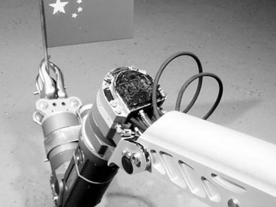 “蛟龙”号将五星红旗插在3757米深海海底。图片由中国大洋协会提供 2010年7月12...