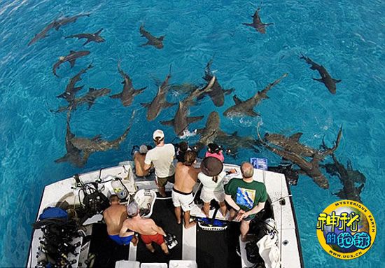 加勒比海巴哈马群岛近距离拍摄柠檬鲨