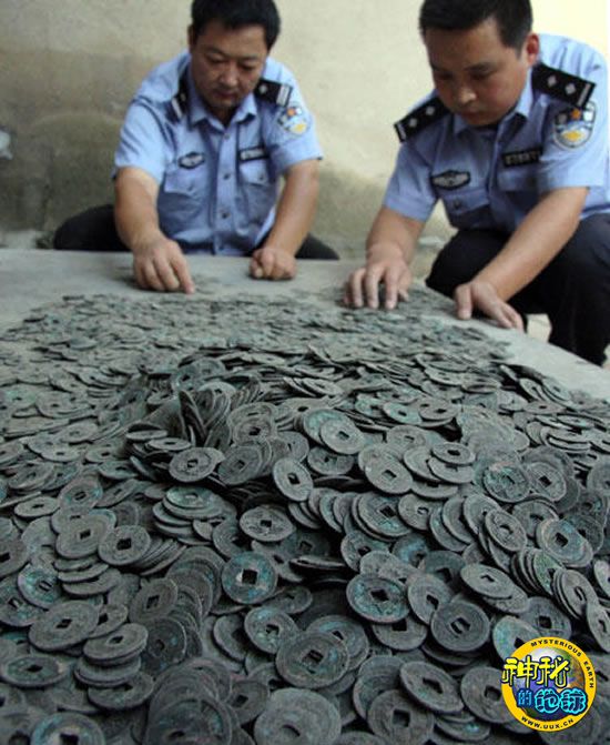 山东沂南一村民在树下挖出大量北宋铜钱 来源: 蜘蛛网 时间:2009年7月11日 14:04 山东省沂南县杨家坡镇一村民在清理大棚周围的树根时,挖出一批北宋铜钱。据县文物专家介绍,出土的铜钱共35公斤,大多铸成于北宋年间,少量为唐代所铸,有十几个币种。这些铜钱保存完好,字迹十分清晰。 新华社发(杜昱葆 摄) 上一篇 下一篇 TAG: 北宋 铜钱