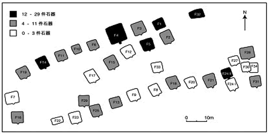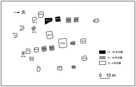 图三 白音长汗遗址兴隆洼文化晚期B区聚落石制品分布图