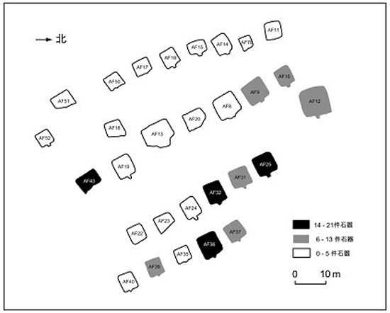 图二 白音长汗遗址兴隆洼文化晚期A区聚落石制品分布图