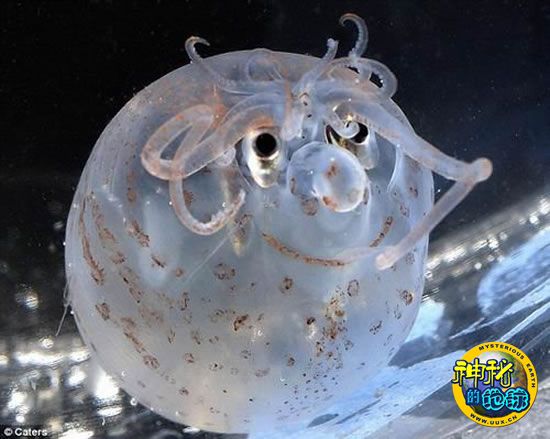 它的学名叫做“Helicocranchia pfefferi”,它的一个显著特征是眼睛下方有一个发光器官,能够产生橙色光线。据悉,美国加利福尼亚州卡布里罗海洋水族馆收集到这种小猪章鱼,该水族馆主管迈克-沙特(Mike Schaat)负责拍摄这张图片。