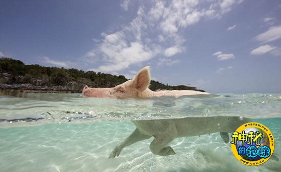 这些野生的猪很善于游泳,当地人和游客都很喜欢他们,他们来到清澈见底的海里游玩时,都会与这些猪猪进行亲密的接触。