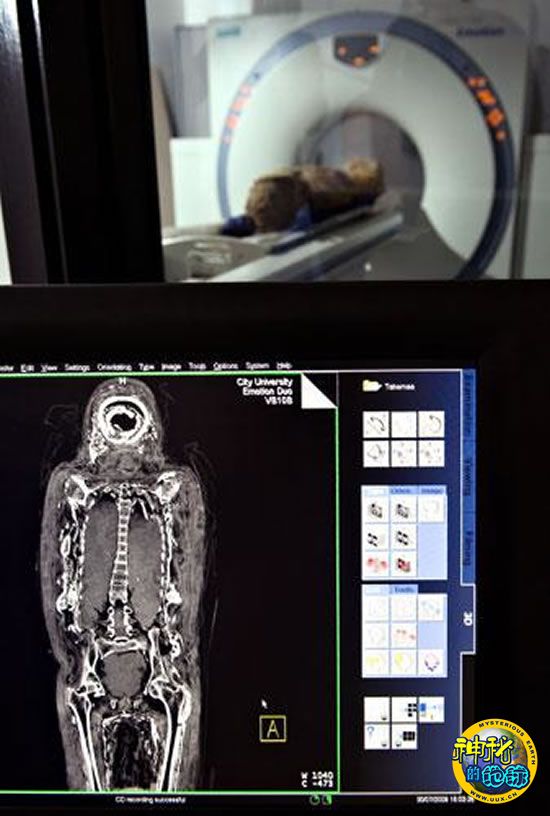 千年木乃伊X光扫描 来源: 蜘蛛网 时间:2009年7月31日 10:43 千年木乃伊X光扫描 2009年7月30日,伦敦市中心的城市大学对一具名为“Tahemaa ”的千年木乃伊进行X光扫描。据研究,“Tahemaa”是28岁时去世的,被完整的保存了2500多年,城市大学的专家们希望通过研究能更多地了解她是如何死亡的。 中国新闻网 上一篇 下一篇 TAG: X光 木乃伊