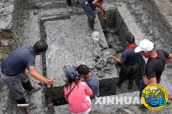 扬州发现西汉夫妻合葬墓 来源: 蜘蛛网 时间:2009年7月31日 10:46 扬州发现西汉夫妻合葬墓 7月29日,考古人员在扬州市维扬区西湖镇汉代墓葬挖掘现场进行清理工作,为开棺做准备。近日,江苏省扬州市维扬区西湖镇发现一座保存完好的汉代墓葬,考古人员依据棺椁的形制以及出土陪葬品的特征,初步判断这是一座西汉时期的夫妻合葬墓。目前棺木尚未打开,详细情况有待进一步考古发掘。 新华社发(王乃驷摄) 上一篇 下一篇 TAG: 西汉 合葬墓
