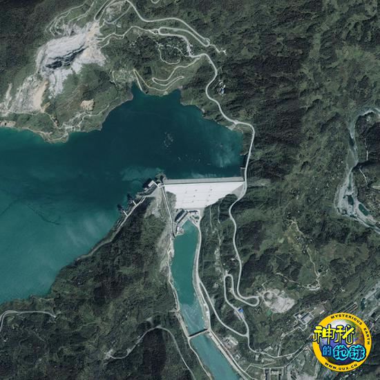 GeoEye 公司Ikonos 卫星拍摄的中国四川省紫坪铺大坝照片,解析度为1米。照片拍摄前几个月,这个大坝在一场大地震中受损