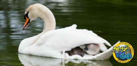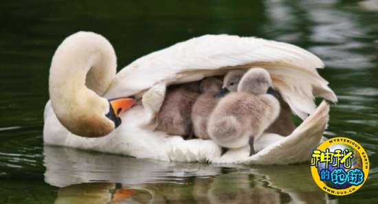 天鹅母亲将小天鹅置于自己的翅膀之下