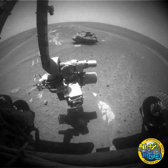 “机遇”号火星车在火星表面发现一块形状奇特的黑色岩石