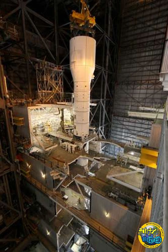 美国宇航局首枚“战神I-X”火箭目前在肯尼迪航天中心已经组装过半。