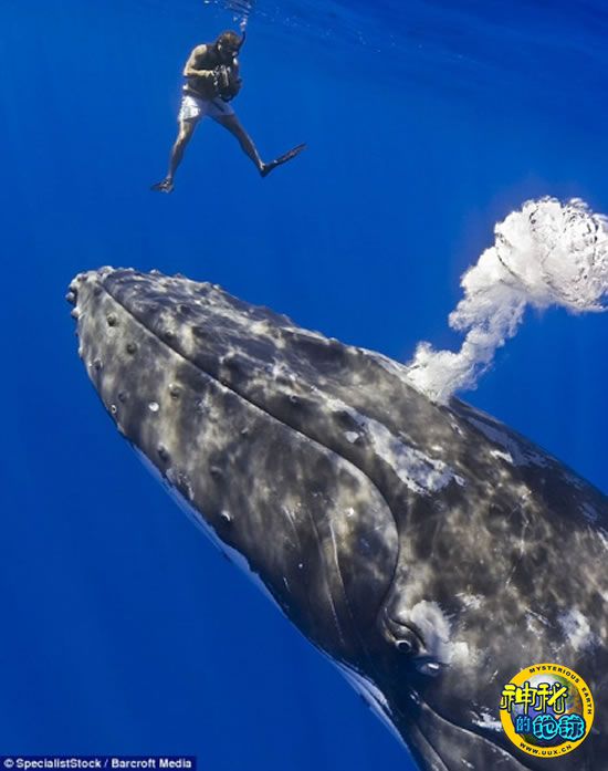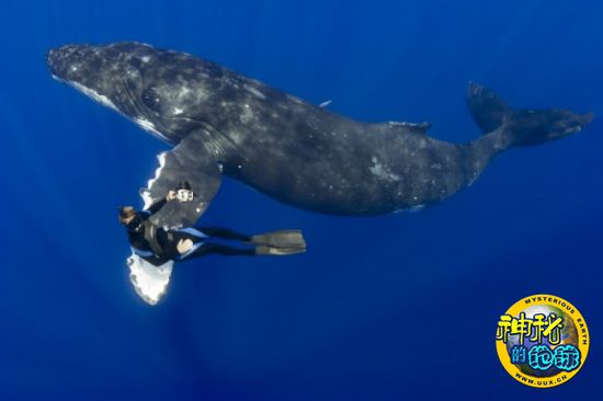 那只乖巧聪明的驼背鲸与奎拉尔一起在海洋中畅游,一起共舞玩耍。然而与驼背鲸接触是需要一些胆量的,因为有时这种庞然大物顽皮地摆动一下尾巴,也会要了潜水人员的性命。奎拉尔表示,能拍到这种令人震惊的瞬间完全是靠运气,过去17年间他从没利用自己所掌握的技术完成这种潜水活动。