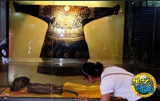 但奇怪的是,干尸外套清代一品官员的朝服,里面还穿了一套青色龙袍,显然与其身份不符。此外干尸头上没有清代男性的辫子,而是盘起的发髻。这些疑点至今无法解释。
