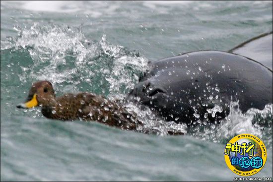 豹海豹不仅具有豹一样的斑点而且性情上也像豹,是海豹中最凶残的一种。它除捕食鱼类和乌贼外,也吃企鹅等鸟类,甚至鲸、其它海豹。不过豹海豹捕食鸭子的镜头还是比较罕见。