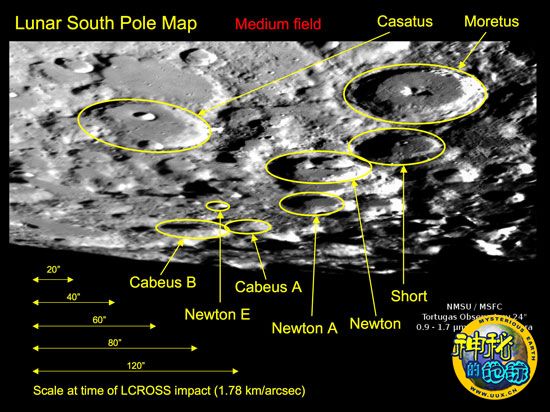 月球南极地图:LCROSS将撞向Cabeus A陨坑