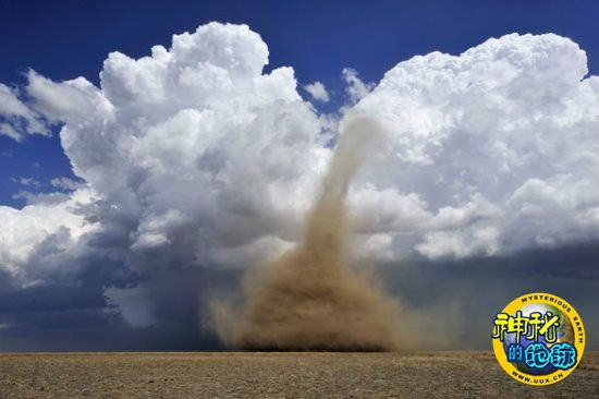 2008年5月8日,美国堪萨斯州西部,位于超级气囊雷暴下方的龙卷风形成了一个巨大的碎片云。