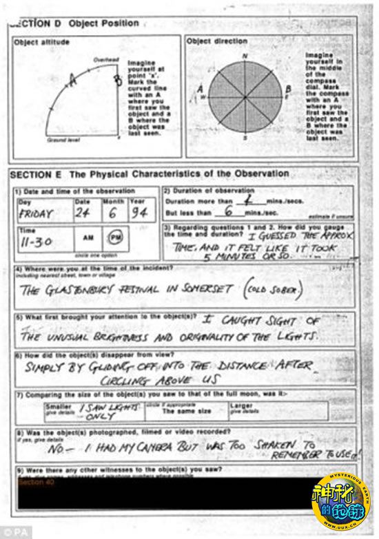英国国家档案馆公布不明飞行物(UFO)目击报告