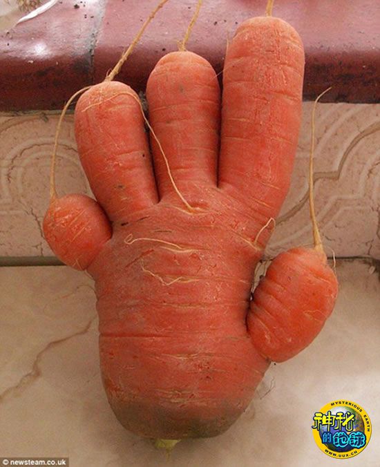 英国媒体20日报道,家住英国什罗普郡的园丁彼得·詹森近日从自家菜园里挖出一个酷似人手掌的胡萝卜。这个发现让66岁的彼得喜出望外,更让他的女儿、42岁的林赛瞠目结舌。林赛说:“这太令人难以置信了,我还是第一次看到长着手指的胡萝卜。我甚至怀疑爸爸的菜园会不会挖出一个长得像人的东西。”