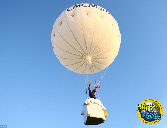 英国探险家大卫·亨普勒曼-亚当斯乘坐一颗微型热气球在美国上空飞行了超过14个小时